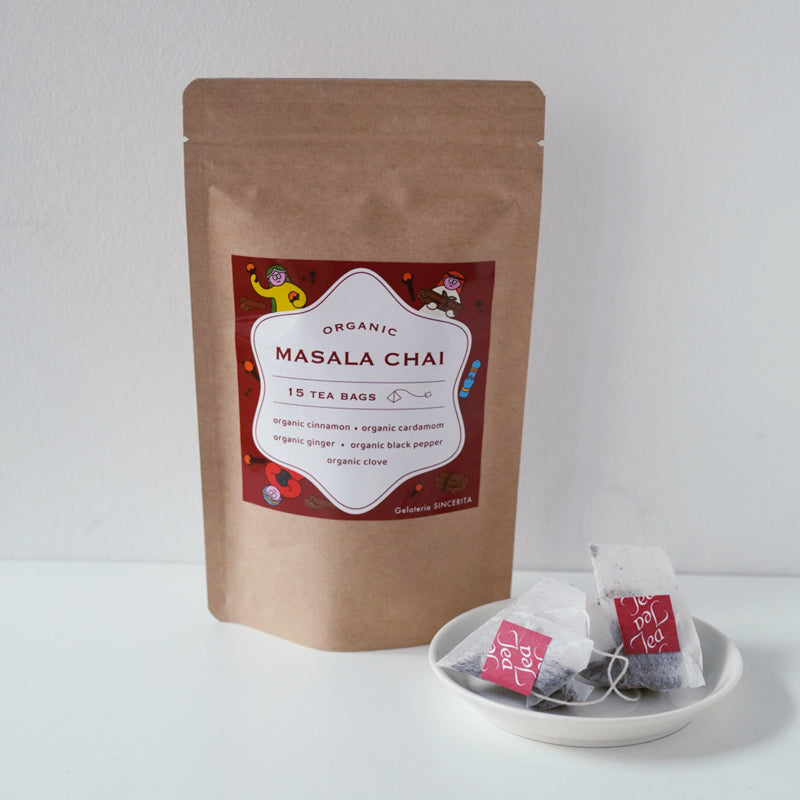 オーガニックアッサムCTC茶葉と、シナモンやカルダモンなどのオーガニックスパイス5種を配合。